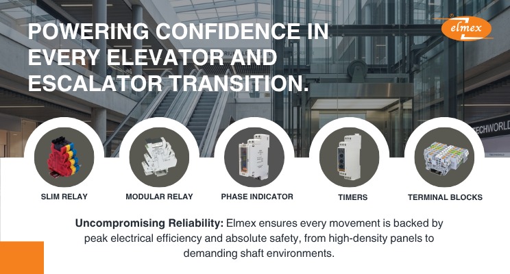 Behind the seamless operation of elevators and escalators relies on crucial components like Slim Relay, Modular Relay, Phase Indicator, Timer, and Terminal Block, which provides the precise and secure electrical connections necessary for reliable performance. For this high-stake environment, Elmex Controls Pvt Ltd offers robust solutions that power the control panels of elevators and escalators with confidence.